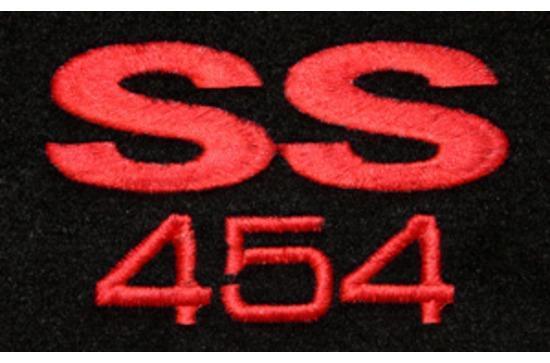 Lloyd mats velourtex black front floor mats for chevrolet chevelle 1968 74 with red chevelle script embroidery.